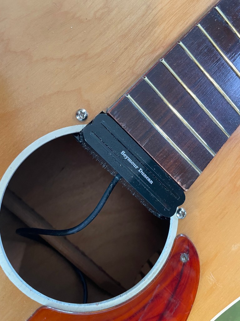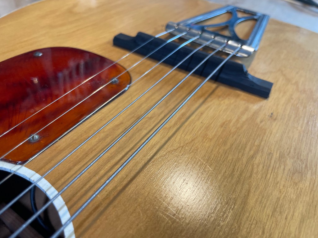 Le rubber bridge consiste à fabriquer un chevalet en bois et caoutchouc pour étouffer le sustain et obtenir des sonorités étouffées et percussives reprises par un micro HB très clair et puissant installé dans la rosace (utilisées de plus en plus dans la folk made in US- Big Thief, Wilco, Aaron Dissner, Taylor Swift, Phoebe Bridgers, etc.).