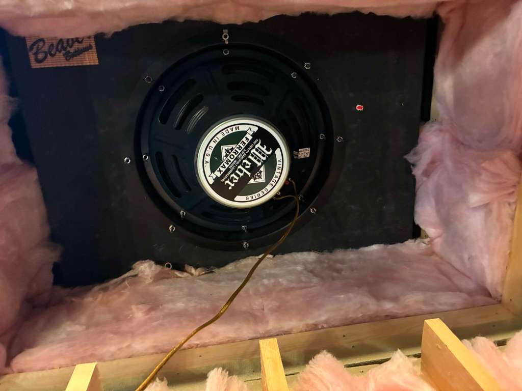 Elle se fixe sur le cabinet qui lui est un reissue d’excellente qualité, équipé d’un Weber 12 pouces mais qui est aussi prévu pour pouvoir accueillir un 15 pouces.