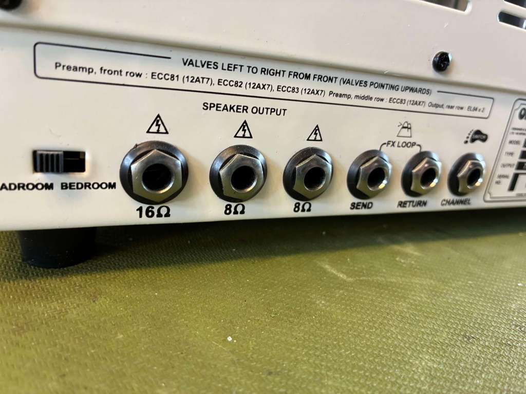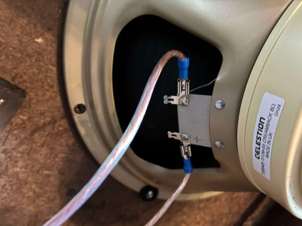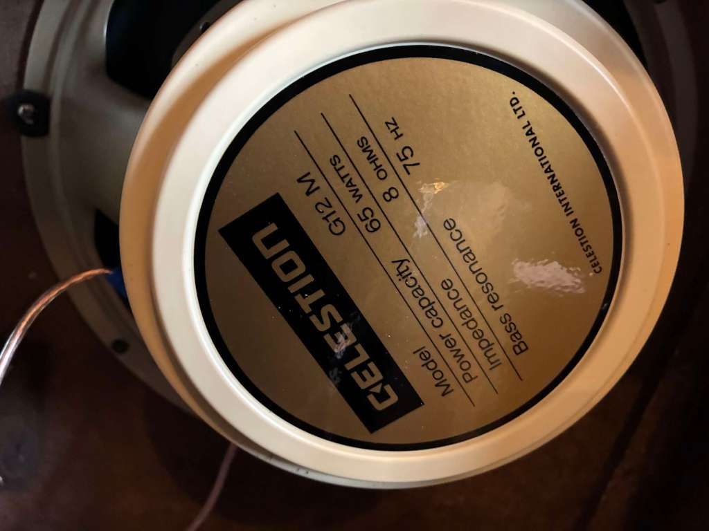 Câblé actuellement en 16ohm, possible de le passer en 4ohm, donc plutôt adapté pour les têtes bassman, Marshall ou autres !
