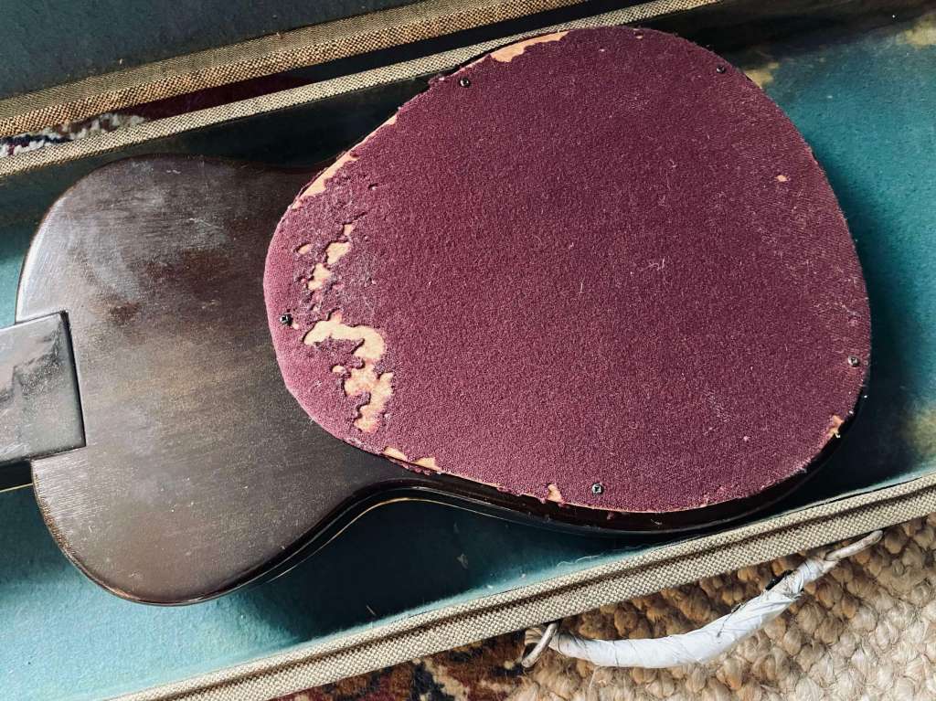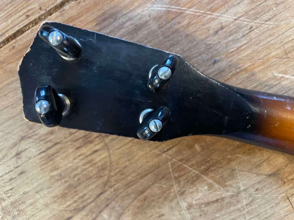 Très belle réalisation proche des productions Martin de l’époque, acajou massif, touche et chevalet en palissandre, mécaniques solides de type banjo, très bel état de conservation et parfaitement jouable.