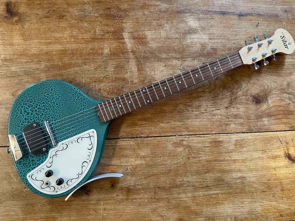 À l’origine conçue par Danelectro pour retrouver ce son de Sitar mais avec un manche et un config de guitare , le modèle a ensuite été repris par le luthier Jerry Jones aux USA.