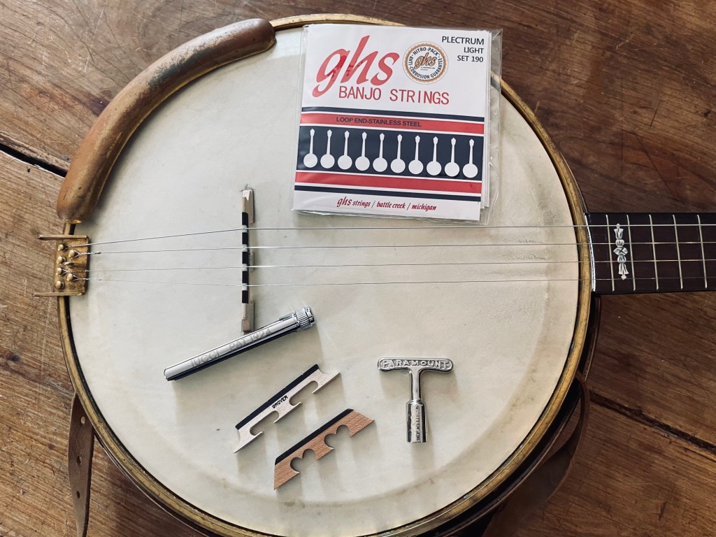 Modèle tenor Plectrum, il est complet avec sa Clé Paramount, une sourdine, un deuxième chevalet Hutchings, une lanière en cuir Deering…