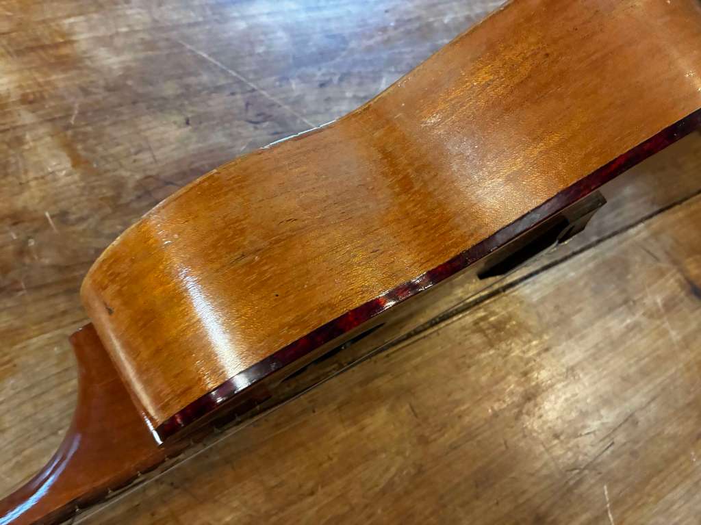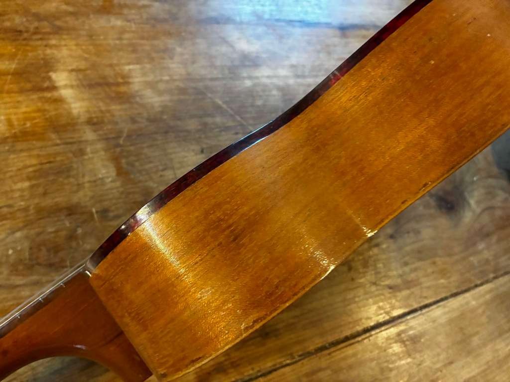 À noter une petite et très ancienne retouche sur le binding du resonateur partie haute, voir photos .