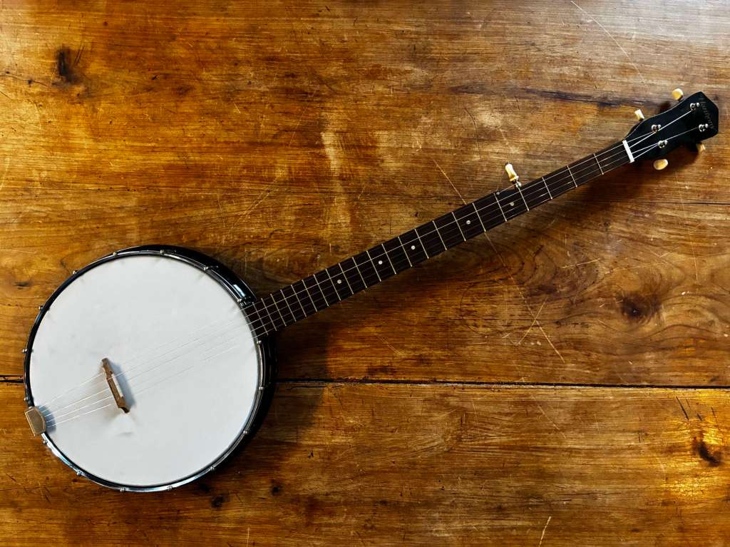 Joli banjo Harmony open back fabriqué à Chicago courant des années 60. Modèle 5 cordes avec la fameuse cordes « bourdon », il développe bien, avec une attaque franche.