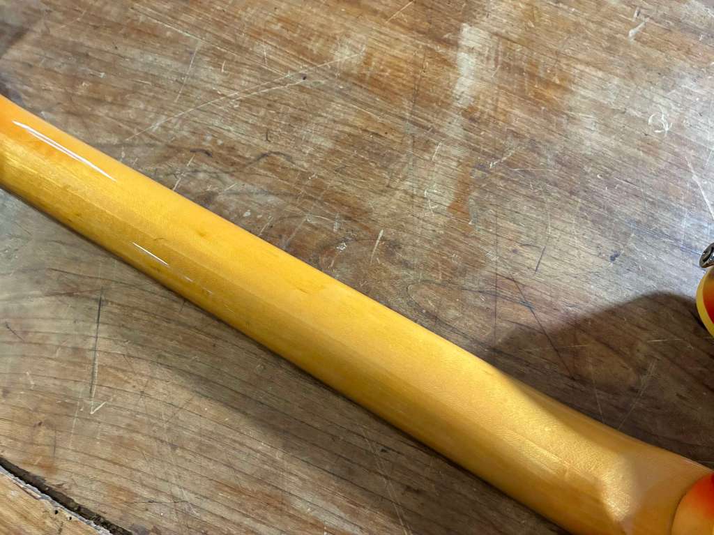Corps Red aider, manche érable une pièce, radius 9,5, micro RebelRelic 56, acastillage relic, pure finition nitro fine et relic, 4,15kg sur la balance.