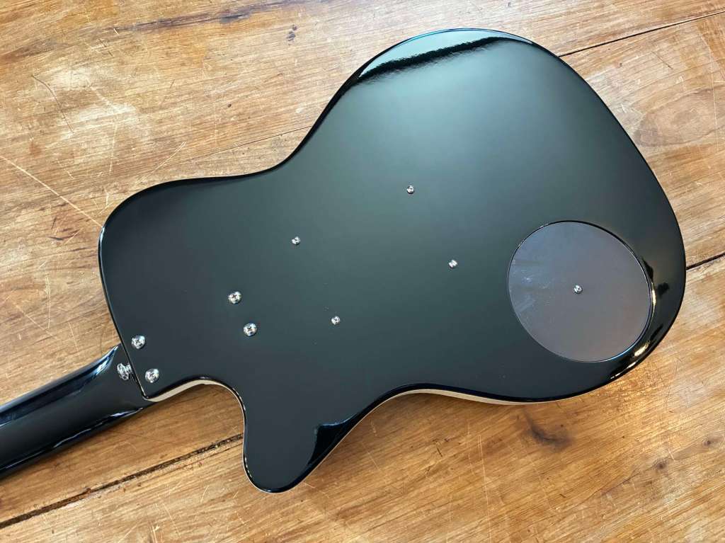 le corps est en effet Hollowbody mais sans ouïes, fermé, 31’ scale, micro speed Bump qui vous fait directement voyager 60 ans en arrière !