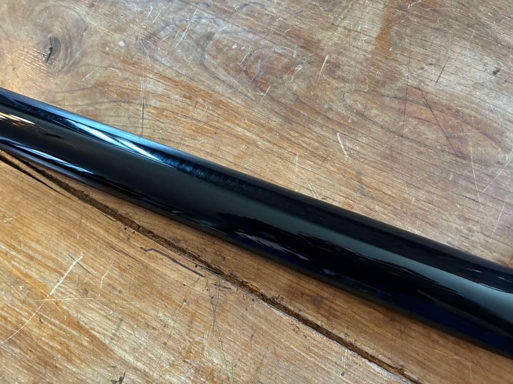 Elle garde des traces d’une ancienne teinte rouge, qui semble avoir passée de manière assez surprenante, je ne vois pas de traces de ponçage ou de refin.