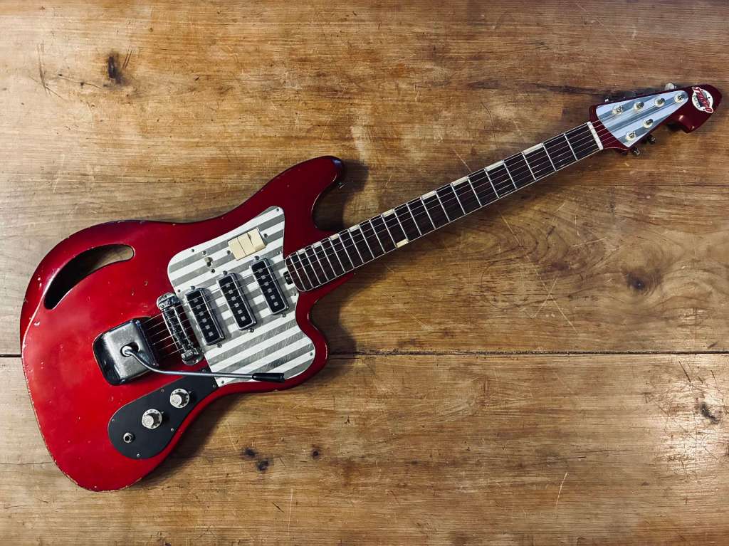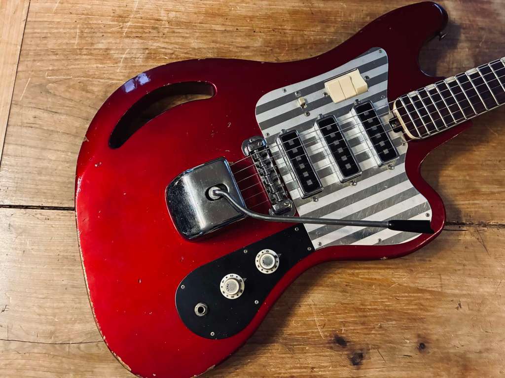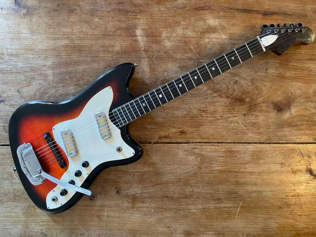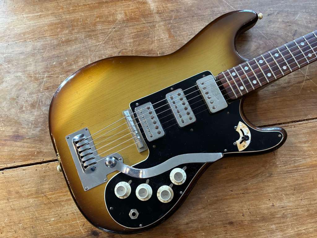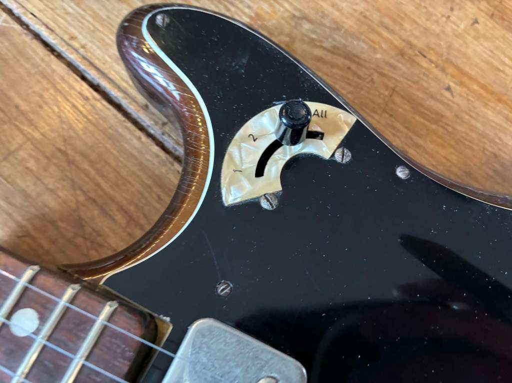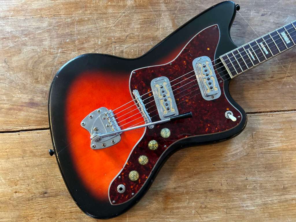 Sa forme semblait librement inspirée à l’époque par la Jazzmaster, mais le son est clairement plus épais, pouvant aller chercher des drives et autres fuzz bien gras.
