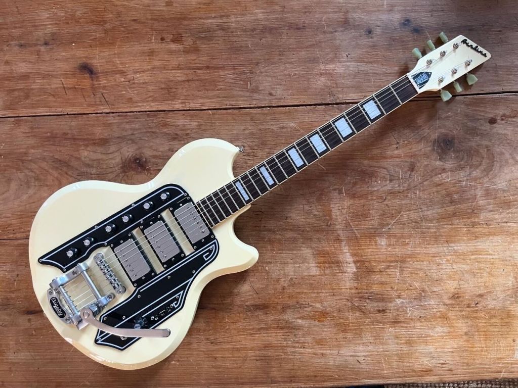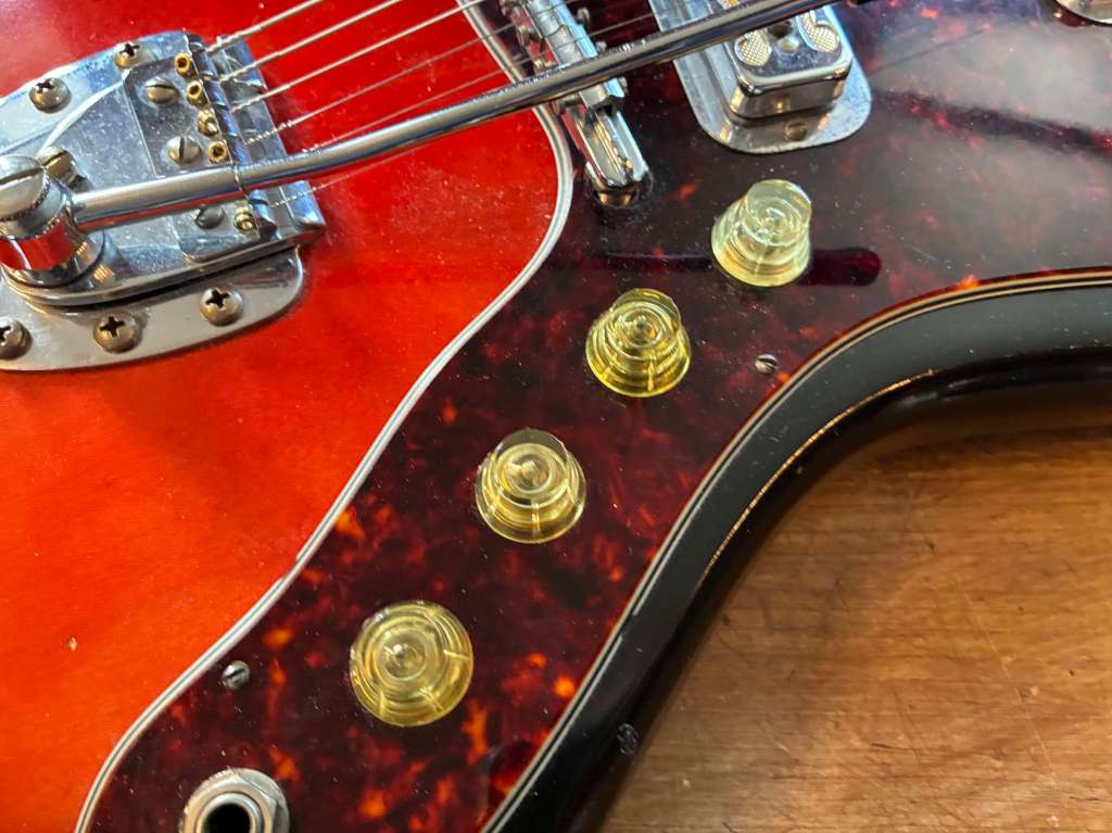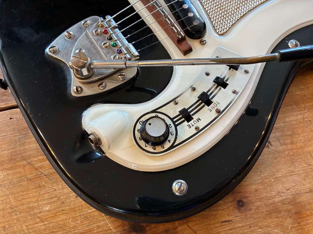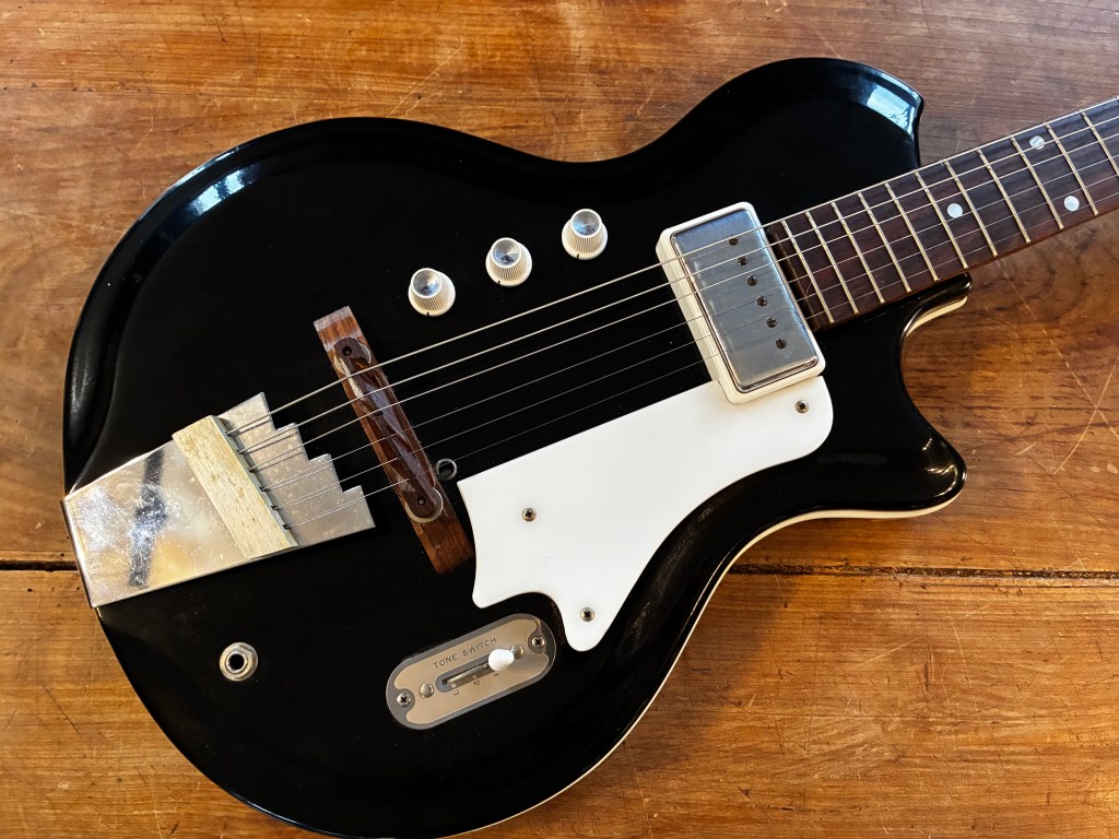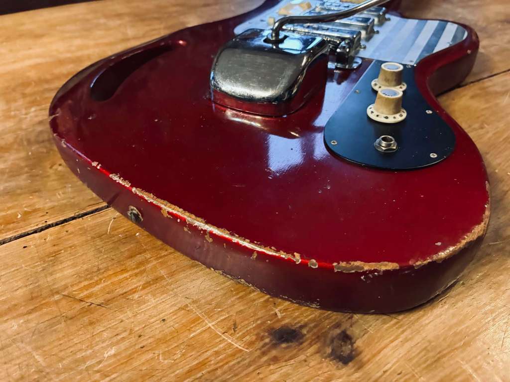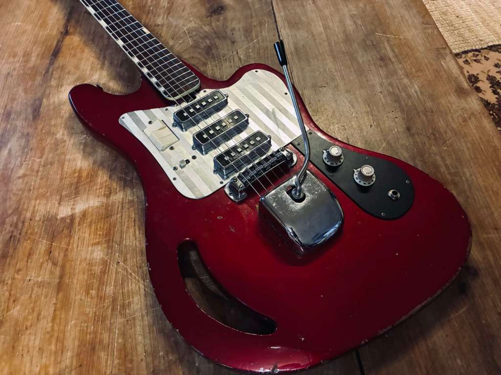 Sa forme semblait librement inspirée à l’époque par la Jazzmaster, mais le son est clairement plus épais, pouvant aller chercher des drives et autres fuzz bien gras.