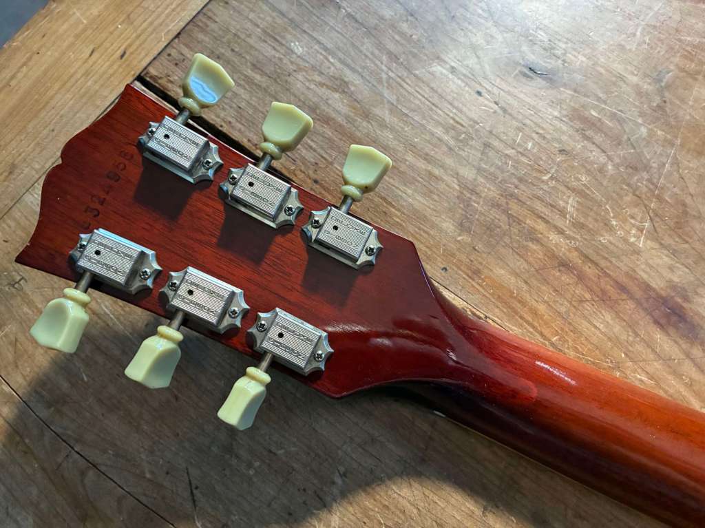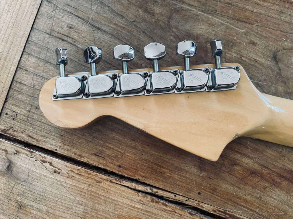 Mécaniques remplacées par des Grover vintage style stables et précises.