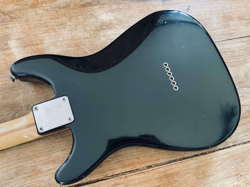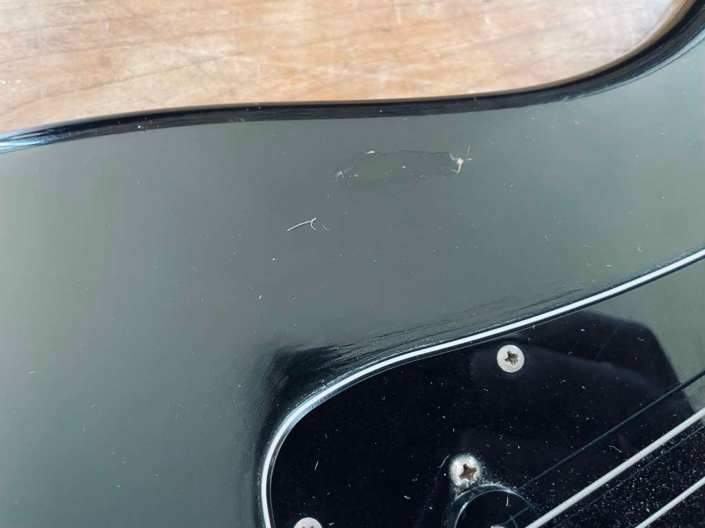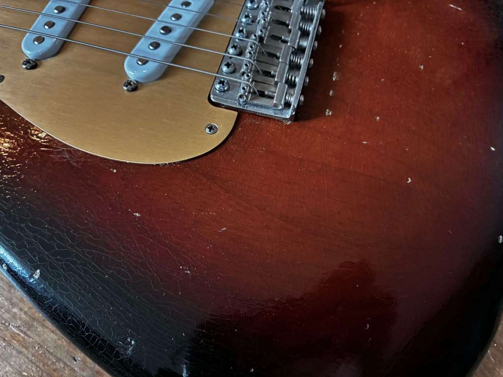 Très bel état de conservation, vernis fin, joli patine avec quelques traces de jeu, de boucle de ceinture mais rien de problématique, frettes en très bon état, L’électronique d’origine répond comme il se doit.
