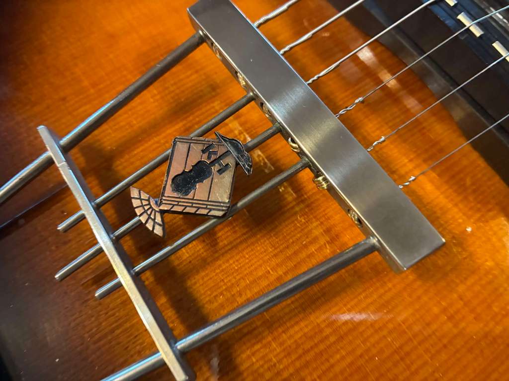 Elle sort d’un réglage complet à l’atelier, à cette occasion j’ai changé le chevalet pour améliorer nettement la stabilité, la jouabilité et la précision de l’instrument.