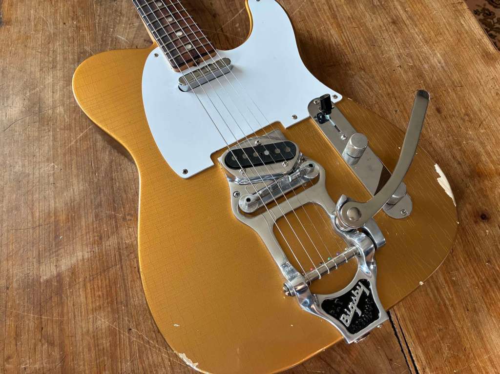 Partcaster Télé MJT, Gold, Bigsby B16