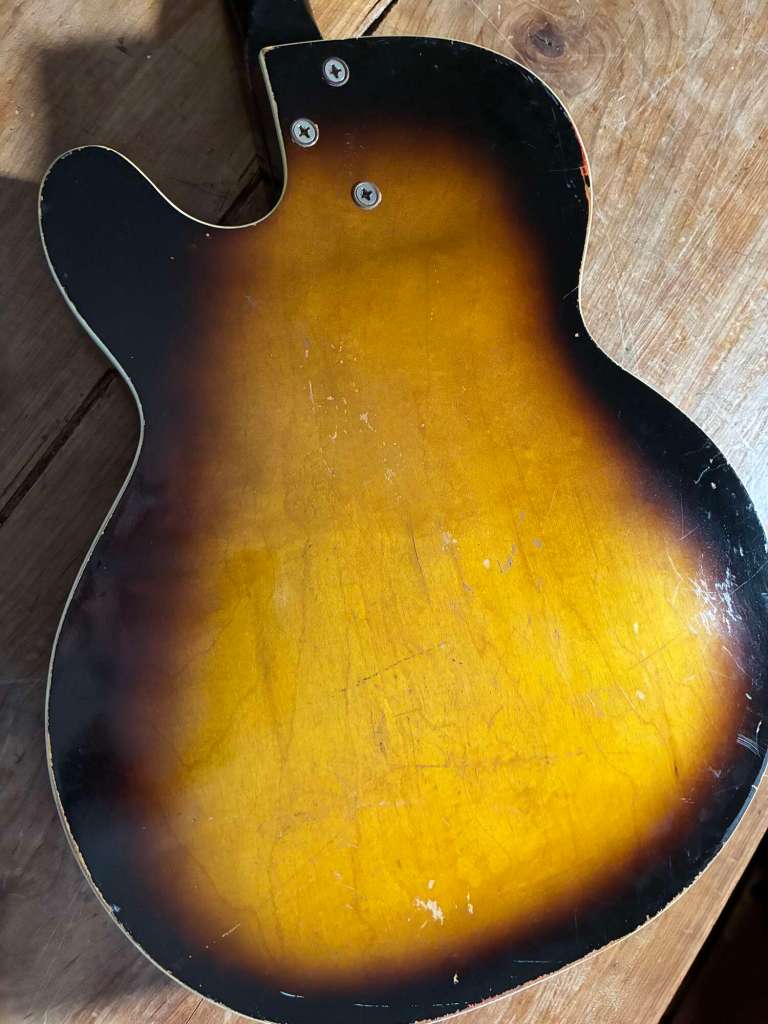 Son corps est creux sans ouie, son manche facile à prendre en main, frettes en excellent état.